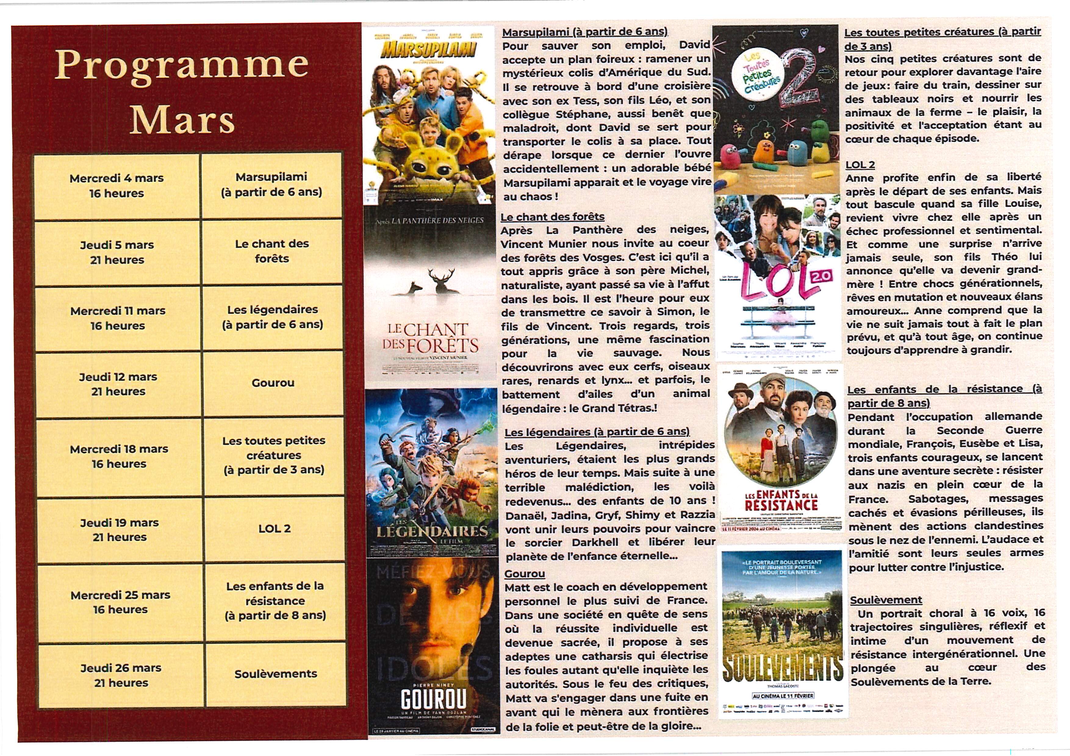 PROGRAMME MARS 2026