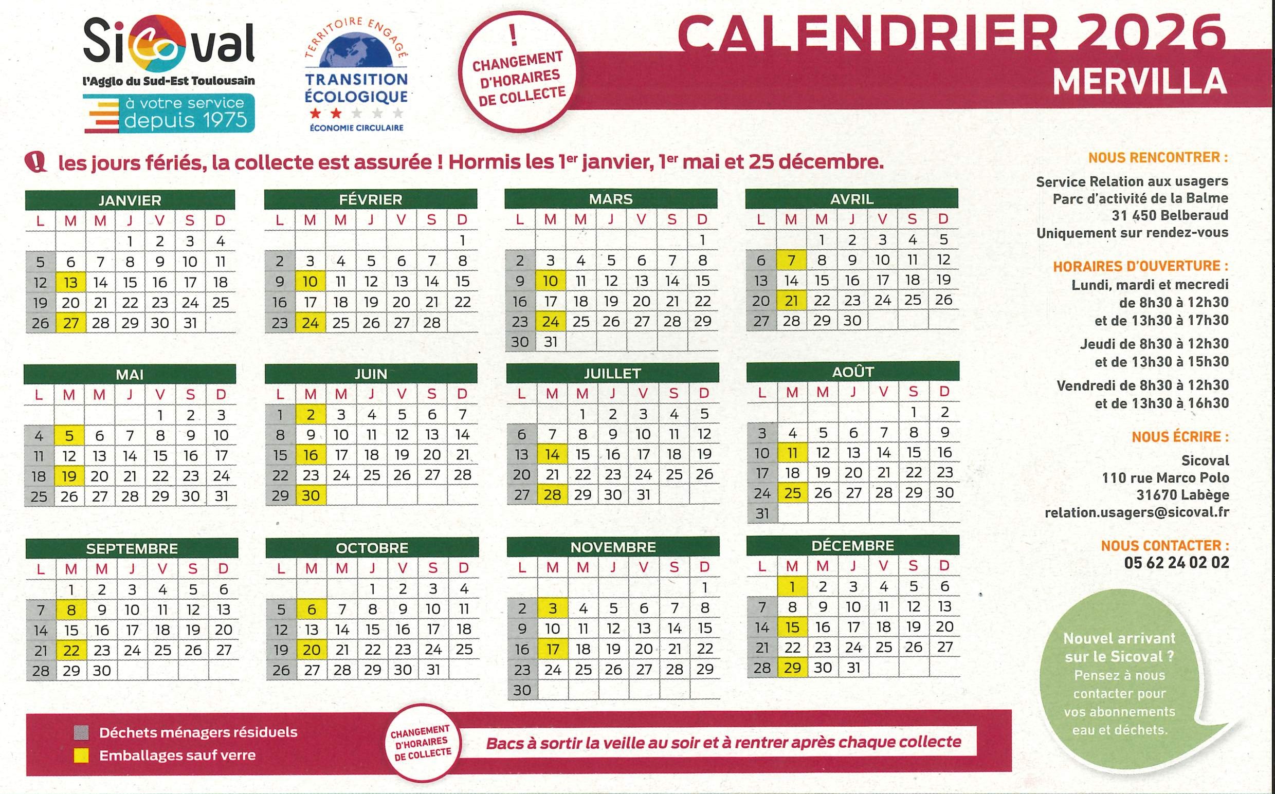 La poubelle de couleur jaune est à sortir le lundi soir pour une collecte très tôt le mardi matin.